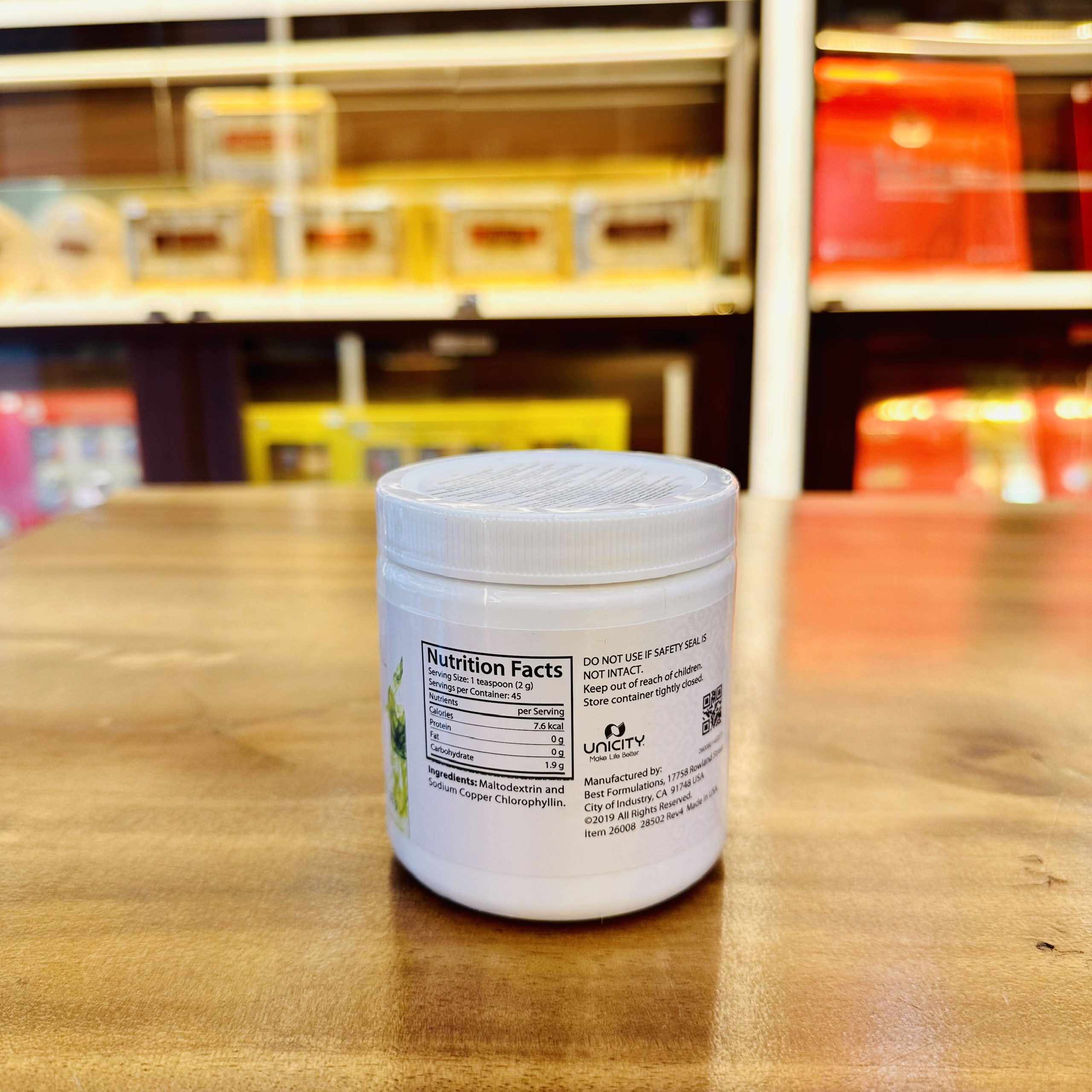 Trang chủ – Sản phẩm – Danh Mục Sản Phẩm – Bột Diệp Lục Unicity Super Powder Chlorophyll Hộp 92g